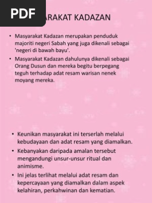 Adat Dan Pantang Larang Masyarakat Kadazan Newppt Pdf