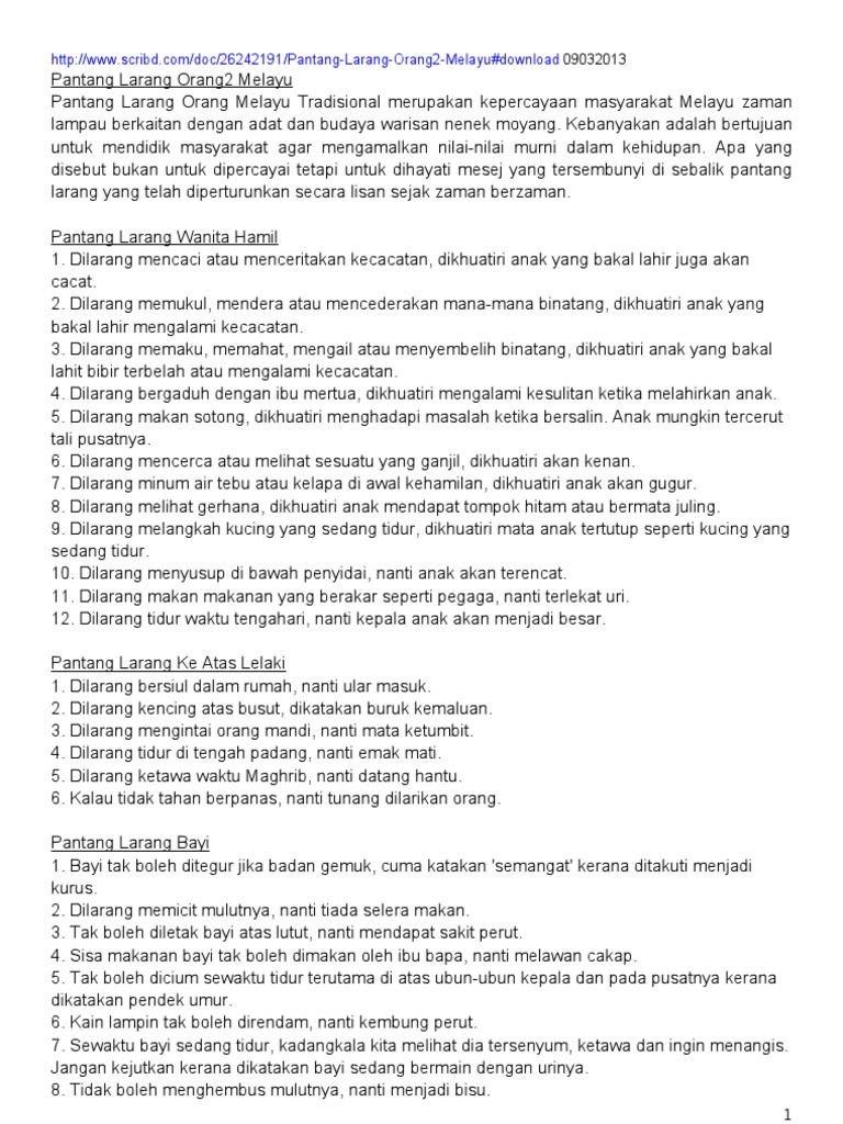 Melainkan korang sume anak yang Taat pada orang tua. Pantang larang merupakan kepercayaan mayarakat Melayu zaman lampau berkaitan dengan adat dan budaya warisan nenek moyang. Friday January 21 2011.